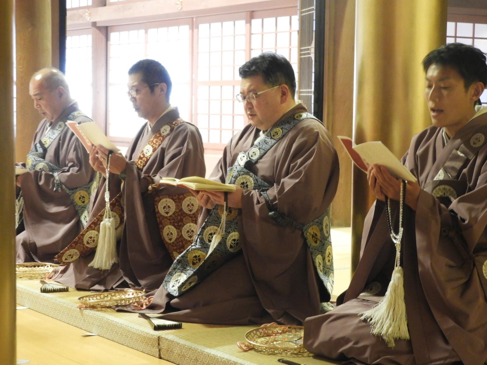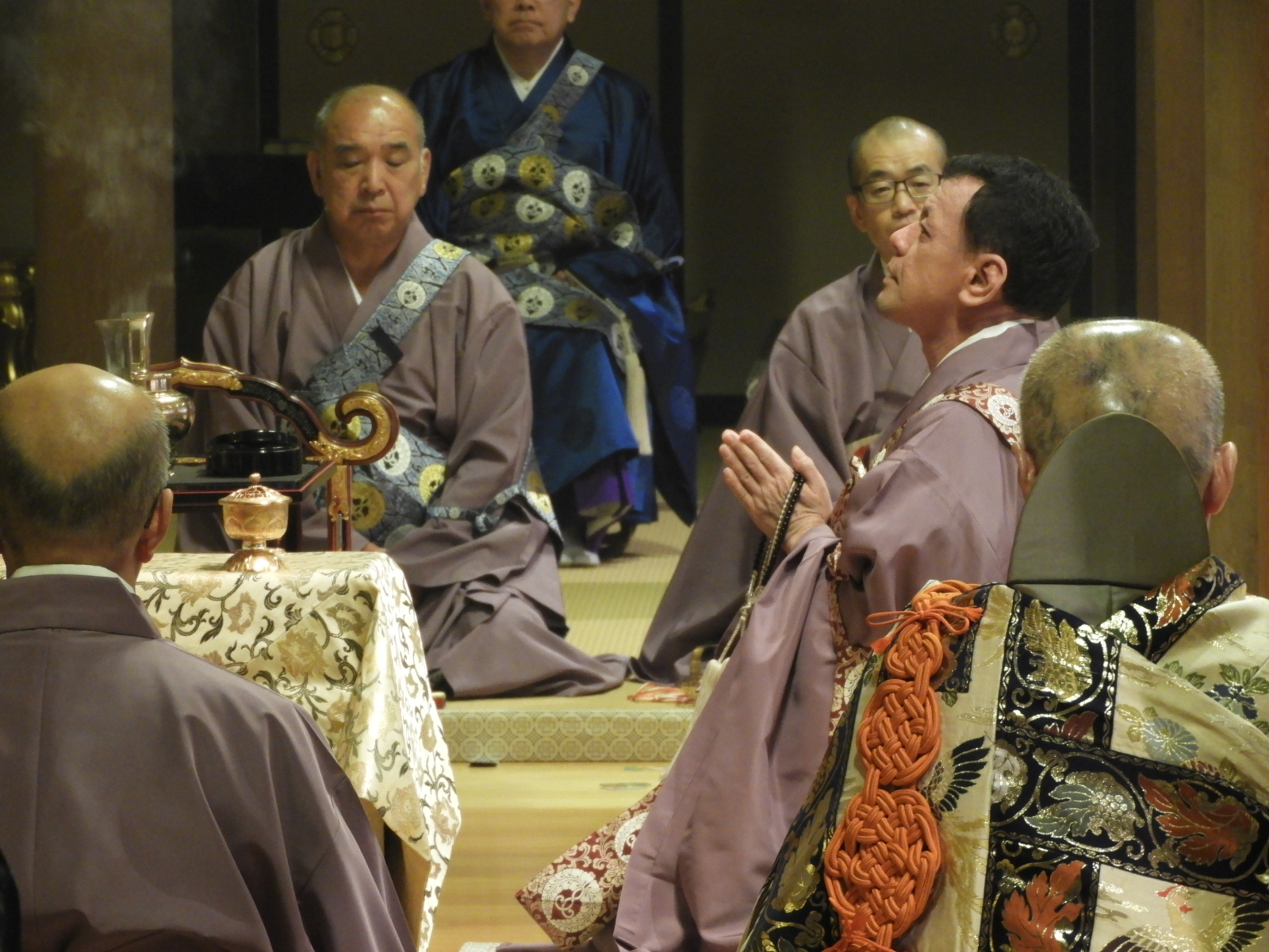 手前:後志 專念寺様              右手前:後志 照覚寺様                                                           中央:後志 真龍寺様              二番目:留萌 善勝寺様                                                            奥 :宗谷 專念寺様              三番目:留萌 永福寺様                                                     (最初と最後だけ輪番が一番手前に座ります)   四番目:後志 真正寺様