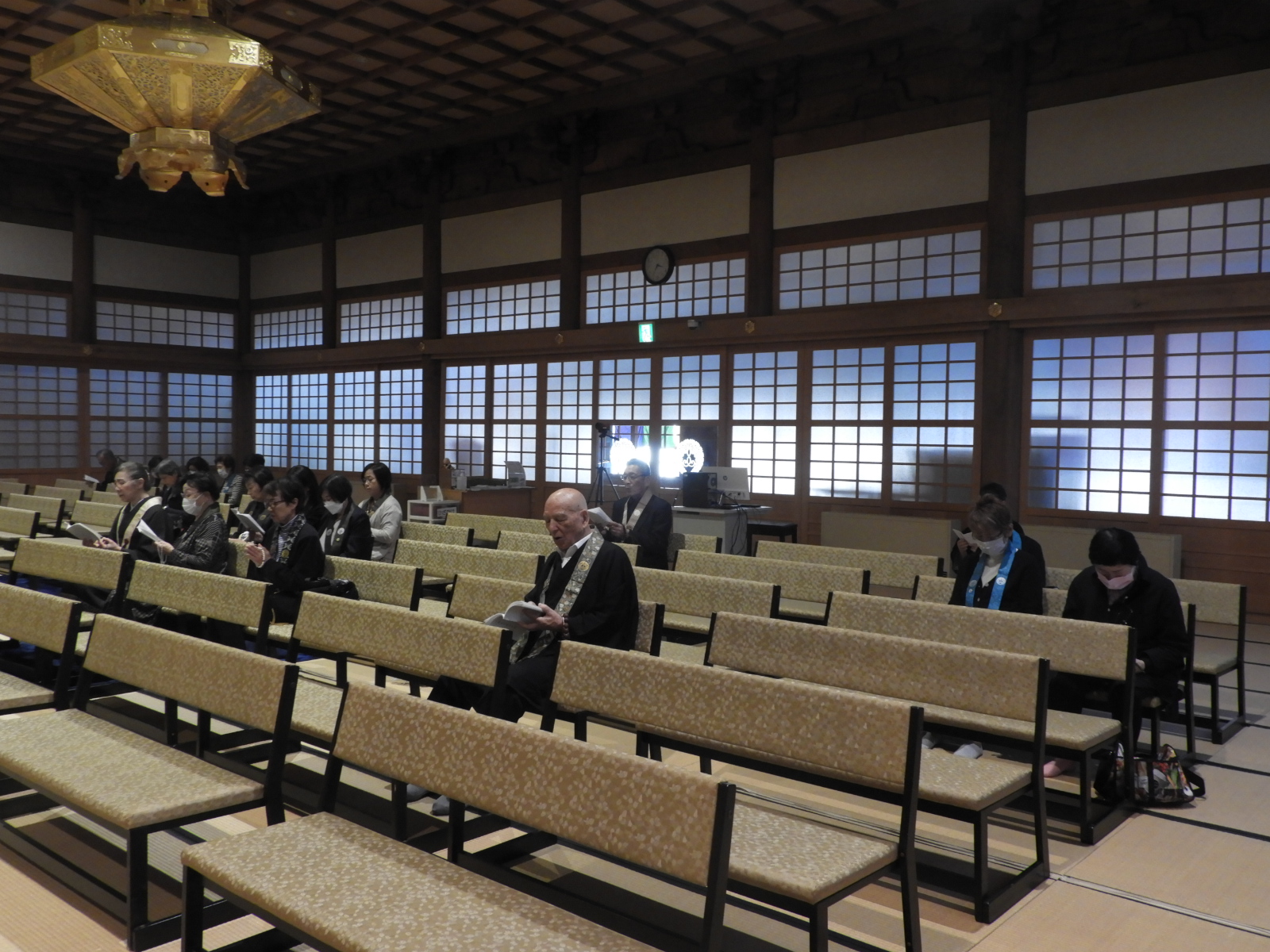 予定では岡﨑副輪番が拝読する予定でしたが、内陣出勤したため村田さんが拝読しました。                                                    本日のお参りは7名でした・・・昨日より減ったような・・・                                                                     そして、最後は花岡尚樹(はなおか なおき)師のご法話で晨朝が終わりです。