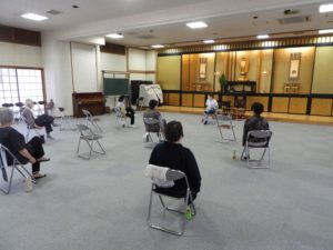 北海道もようやく落ち着きを取り戻しつつありますので、ソーシャルディスタンスを保ちつつ体操を行います。