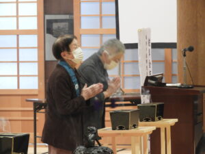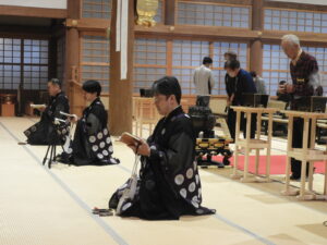 • 法名の奉呈(ほうてい)の後、おつとめ「読経作法:どっきょうさほう(阿弥陀経:あみだきょう)」(お焼香)