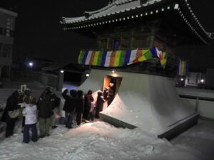 小樽名物 「雪明りの路(ゆきあかりのみち)」ならぬ、雪明りの鐘楼(しょうろう) 岡﨑副輪番・西脇さん作