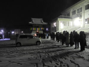 午後11時50分、本川輪番の一打より除夜の鐘撞きが始まります。