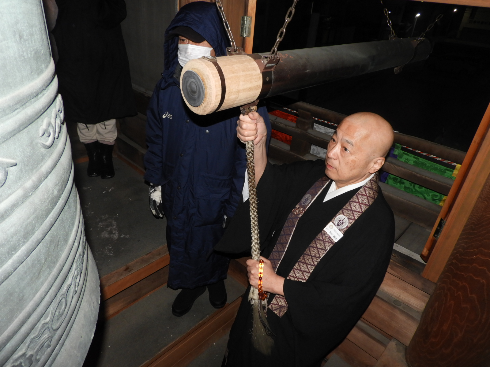午後11時50分、本川輪番の一打より除夜の鐘撞きが始まります。