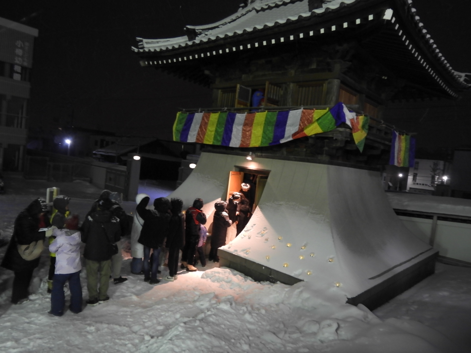 小樽名物 「雪明りの路(ゆきあかりのみち)」ならぬ、雪明りの鐘楼(しょうろう) 岡﨑副輪番・西脇さん作