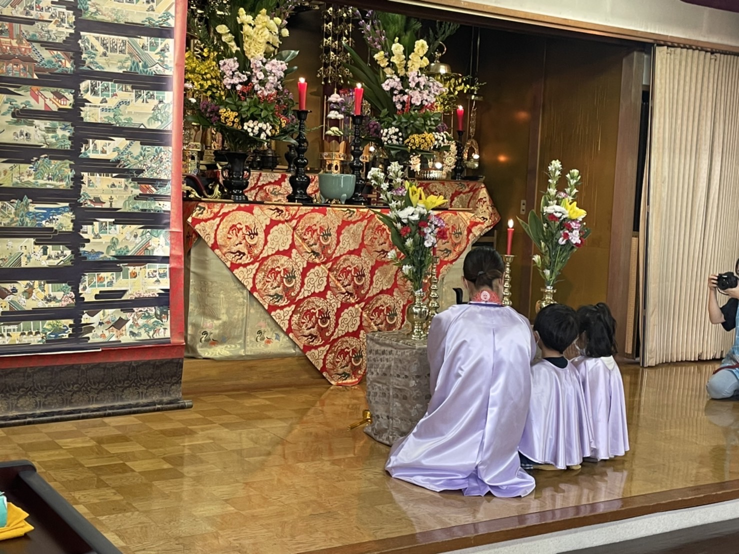 今日は新光保育園の園児が参拝に来てくれました。 外はすごく、すごく温かく、園児は上着も羽織らず元気に訪問。